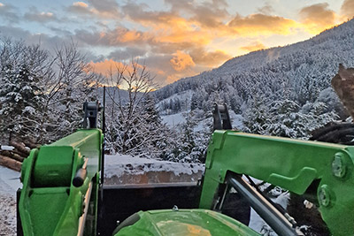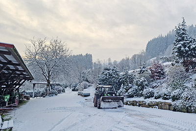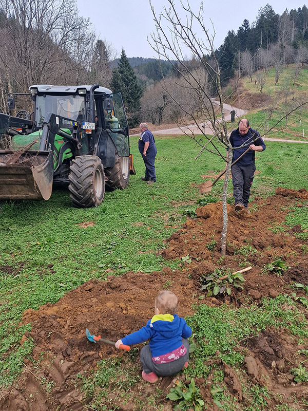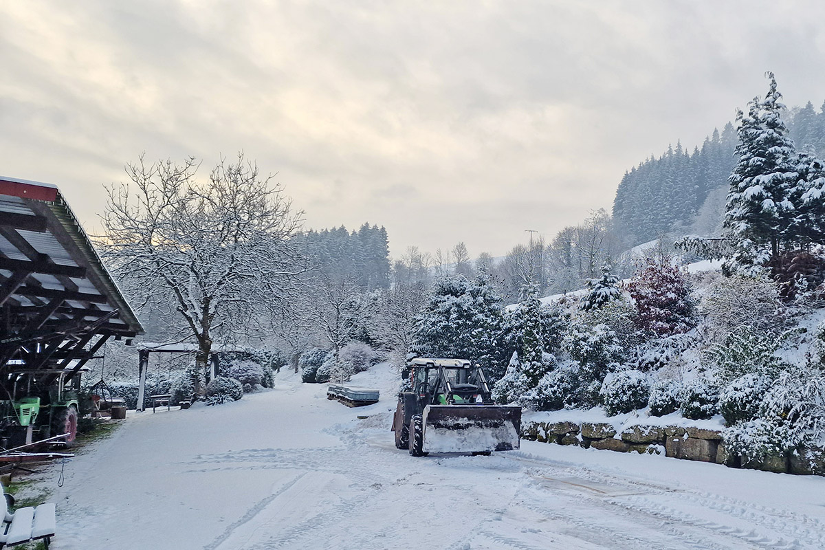 Das Brennholz stammt aus der eigenen Waldpflege und Landschaftsoffenhaltung, wird gehäckselt und im Holzschuppen getrocknet. Auch unsere Brennerei und der Backofen werden mit Holz befeuert.