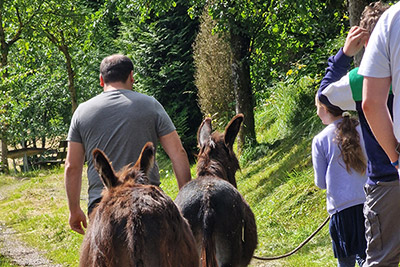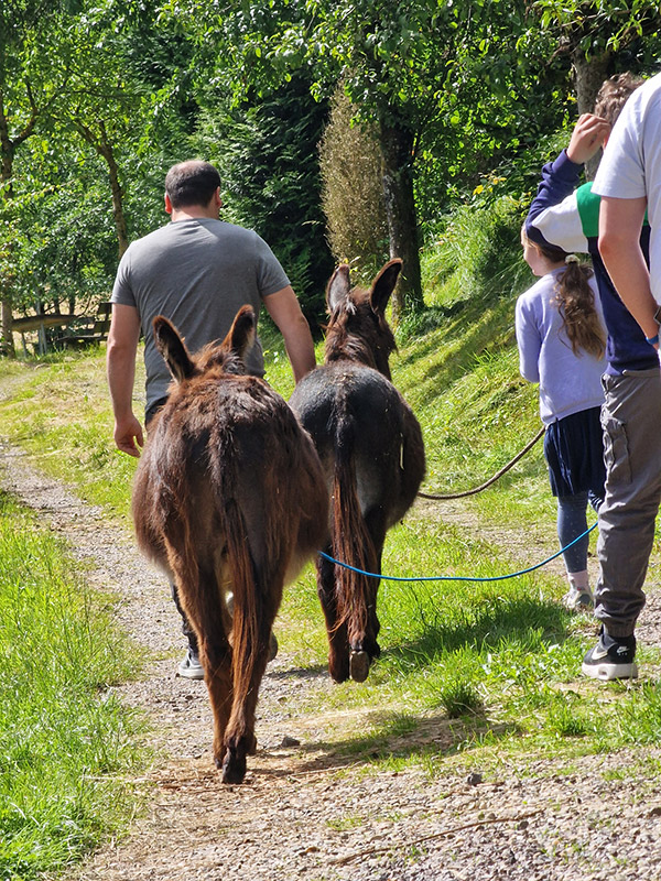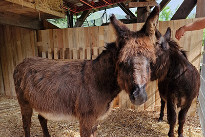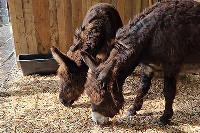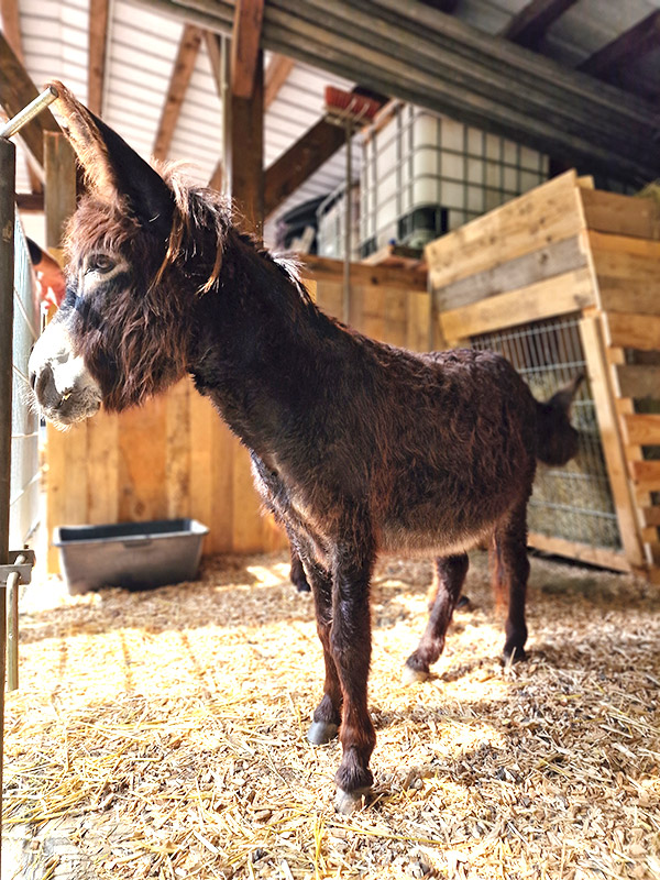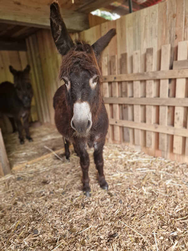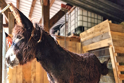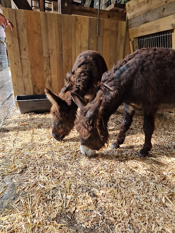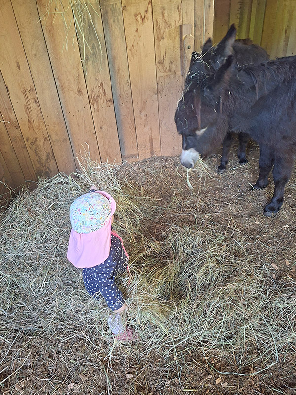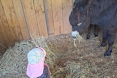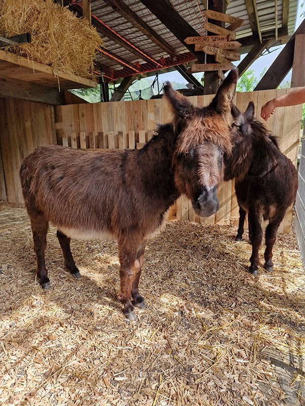 „I-A-AH!“ Wir Esel begrüßen unsere Gäste lautstark, möchten aber nur vom Bauern gefüttert werden. Beim Misten, Hufe auskratzen oder Striegeln dürfen Jung und Alt gerne helfen.
