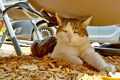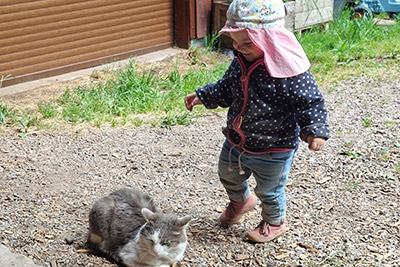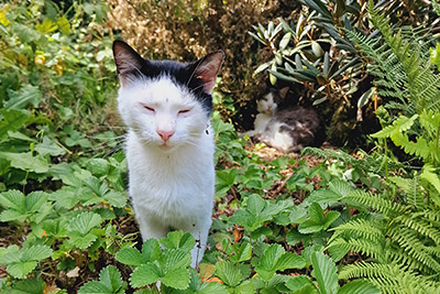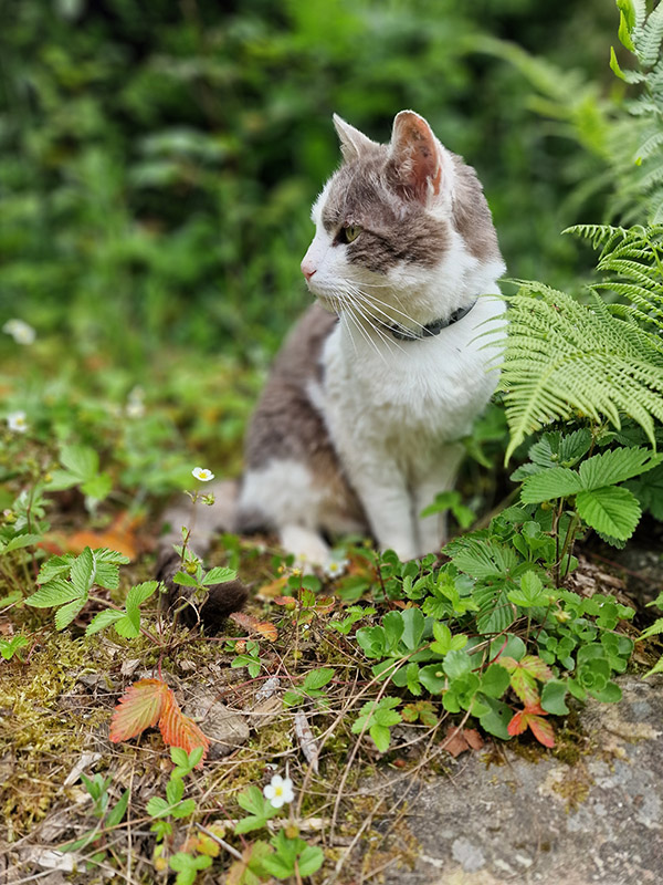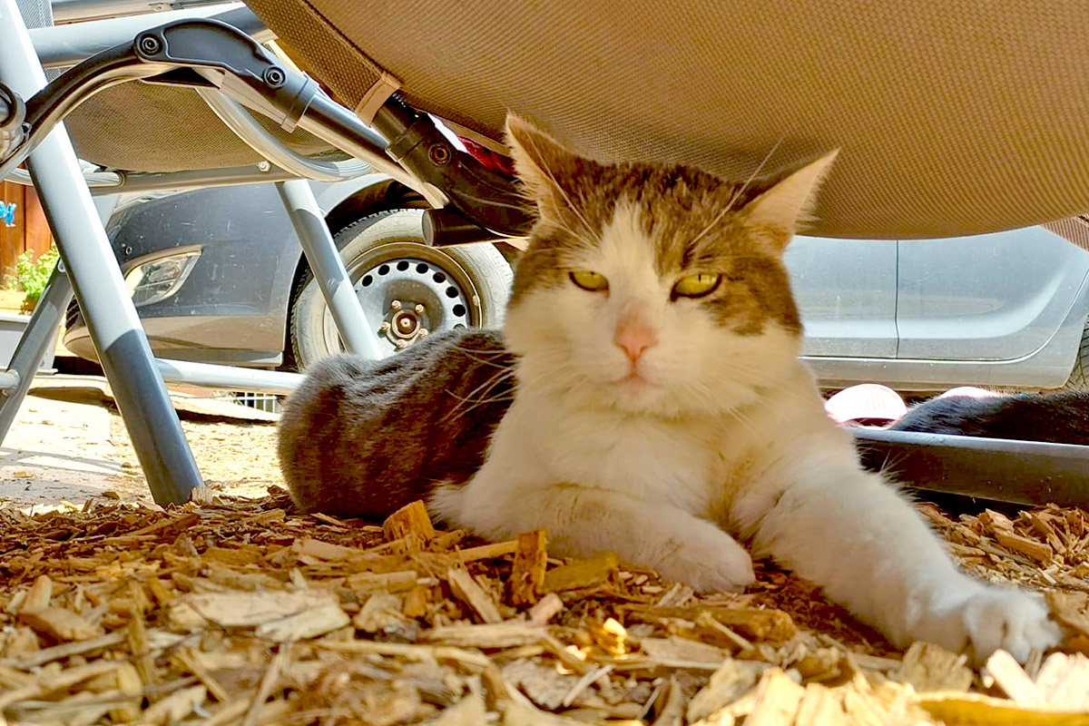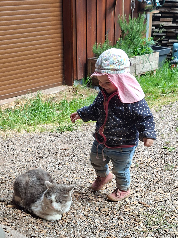 Wir Katzen sind die Mäusejäger des Hofes. Streicheleinheiten genießen wir sehr, ziehen uns aber auch gerne in unsere Verstecke zurück.