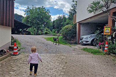 Im Gehege neben dem Kinderspielplatz leben unsere Zwergziegen. Sie freuen sich über jeden Besuch, von Kindern so von den Erwachsenen. Über getrocknetes Brot, Möhren, Salat oder anderes einheimisches Gemüse freuen sich die Ziegen besonders.